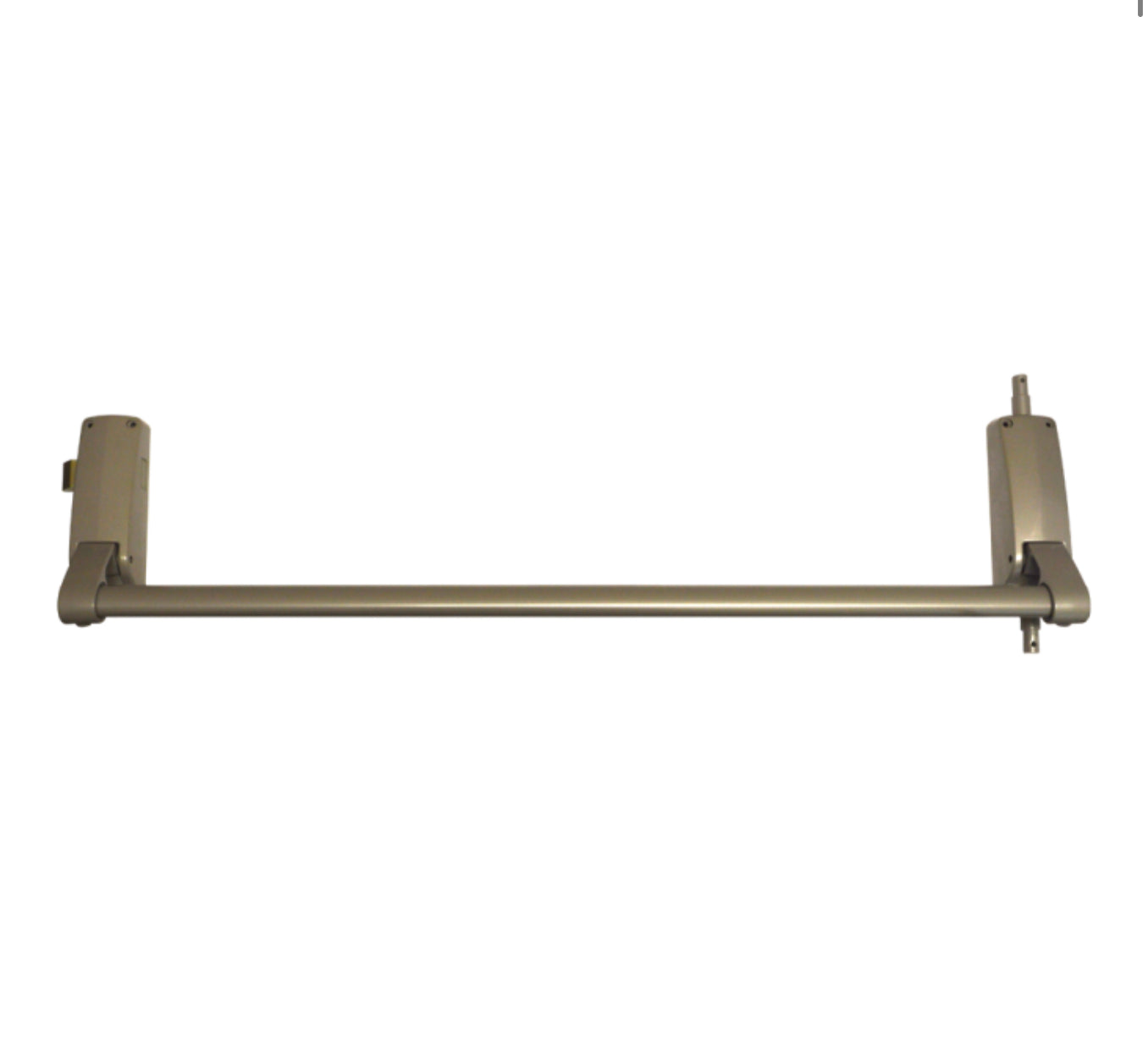 - Push bar or pad to disengage the bolts for easy egress from the building in an emergency.