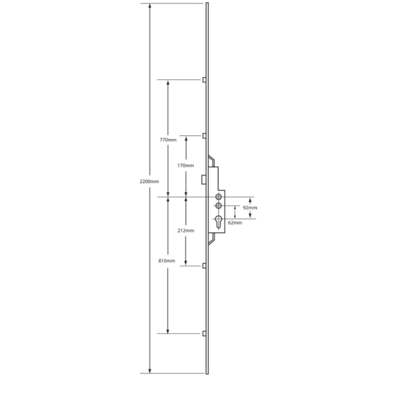 Lever operated latch and deadbolt twin spindle multipoint with 4 rollers. The unit has a 35mm backset and 92/62mm centres.