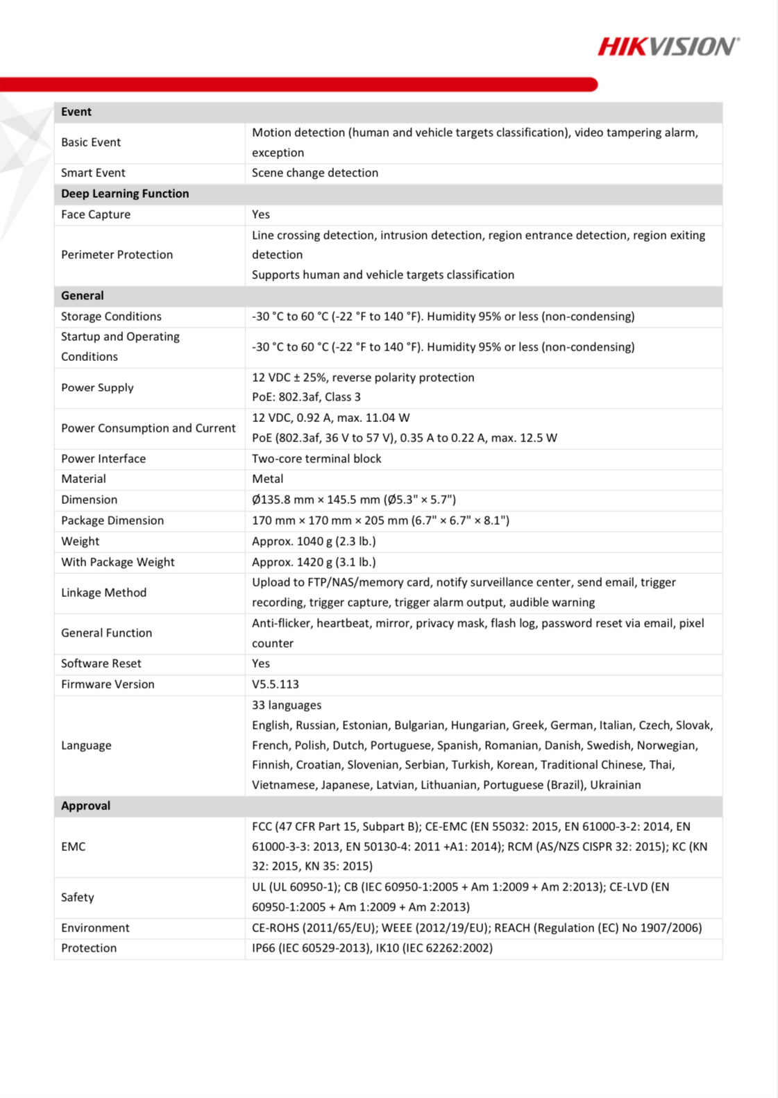 Hikvision 6MP AcuSense Motorized Varifocal Turret Network Camera, Powered by DarkFighter, 2.8 to 12mm lens, Audio/Alarm, up to 40m IR range, 12 VDC/PoE, 3 year warranty