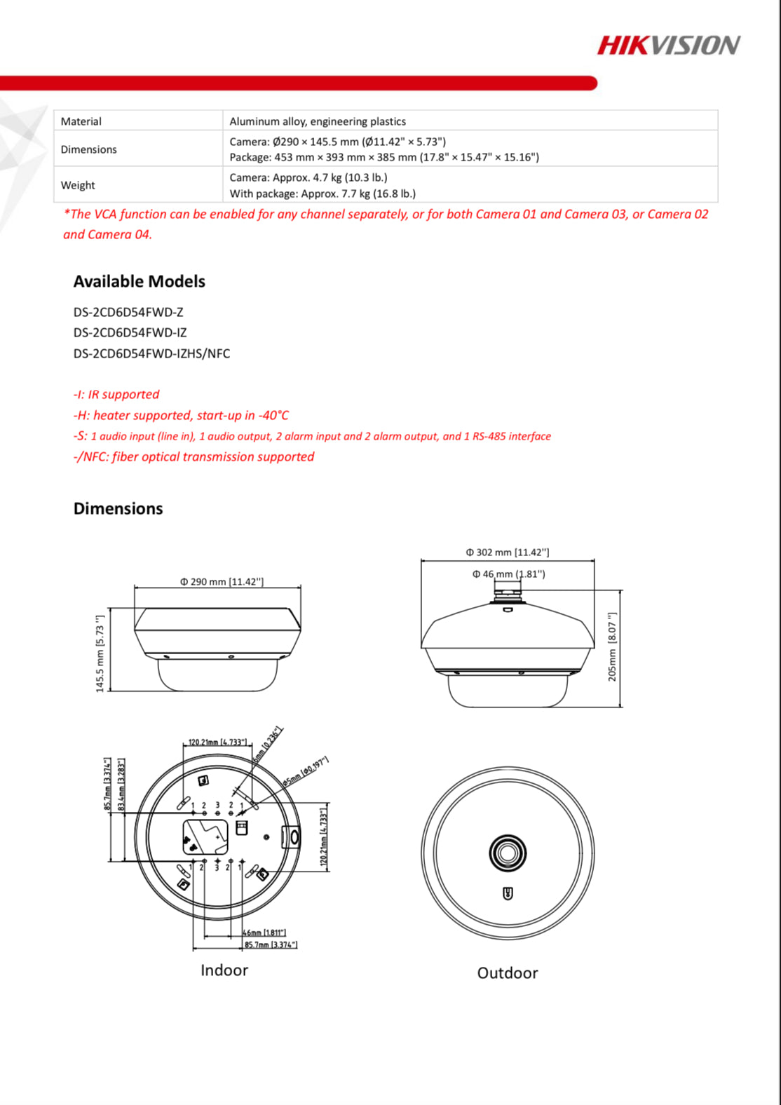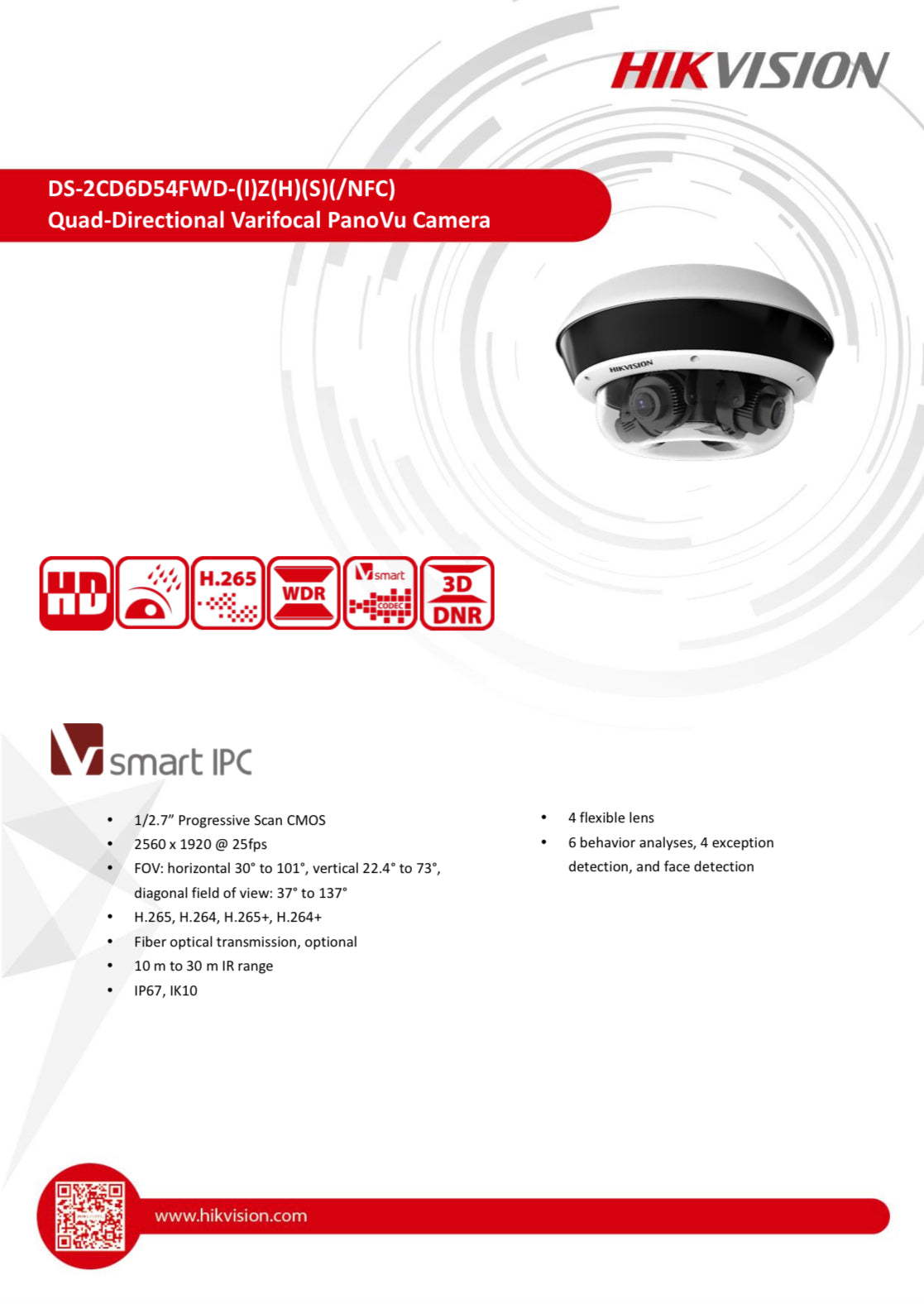 Hikvision 4 x 5MP Quad-Directional PanoVu Camera, 4 x 2.8-12mm Varifocal Lens, 10m – 30m IR range, Audio/Alarm, 12VDC/24VAC/Hi-POE, 5 year warranty