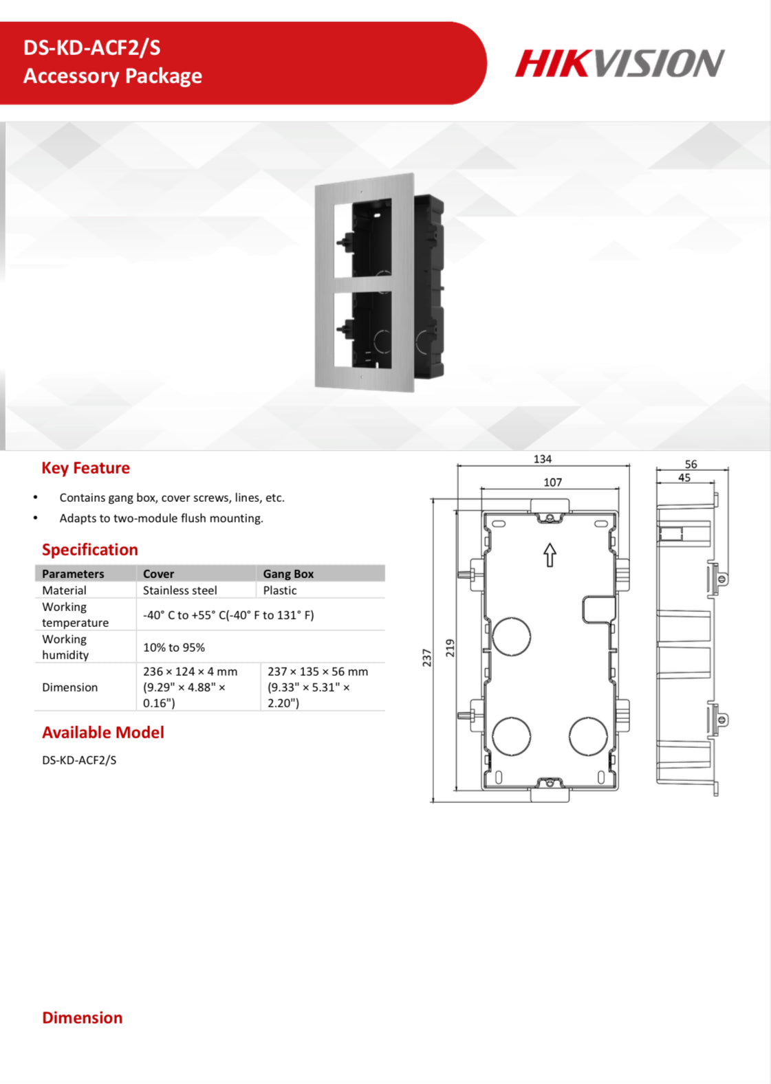 Hikvision Stainless Steel Adapts to two-module flush mounting.