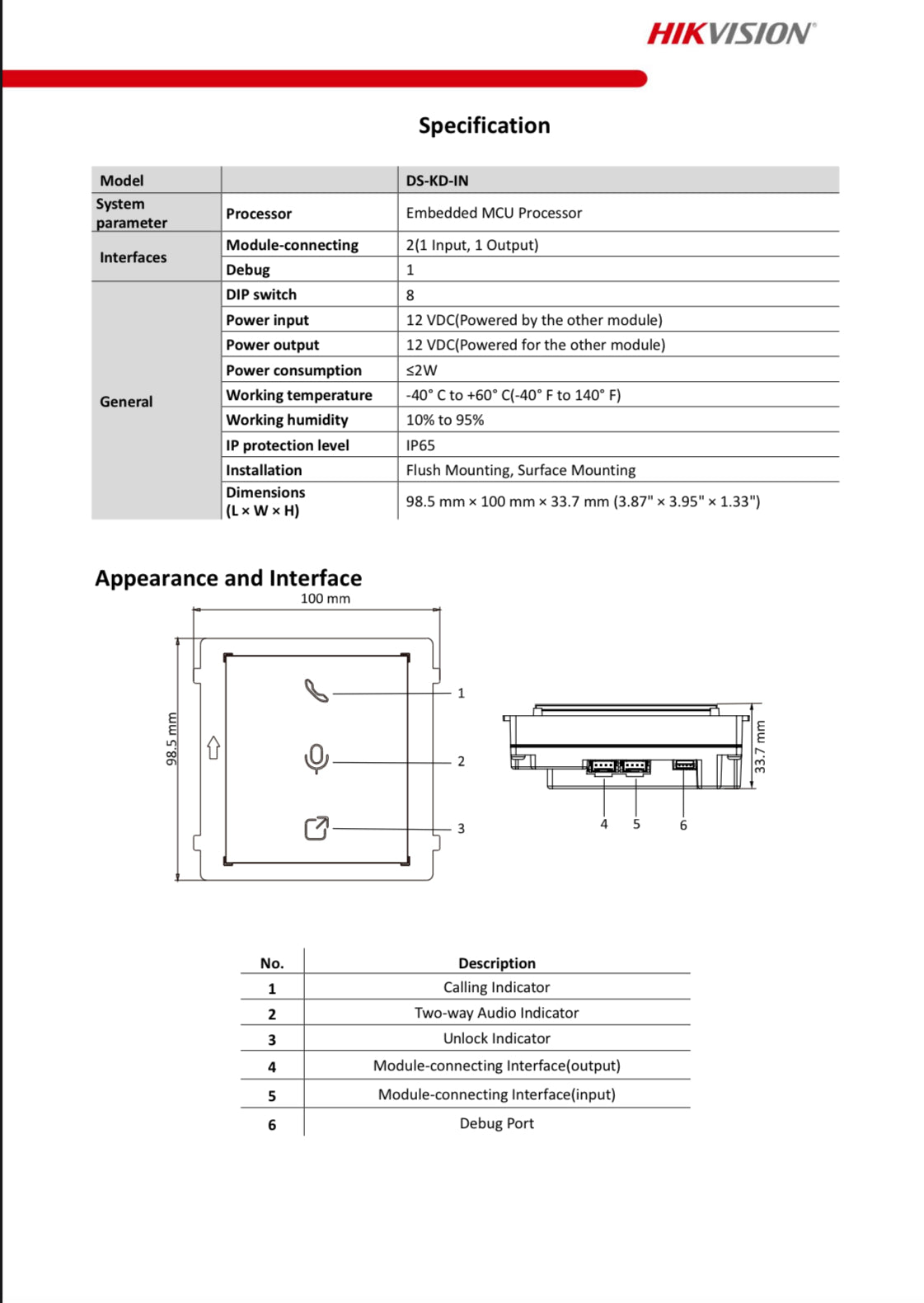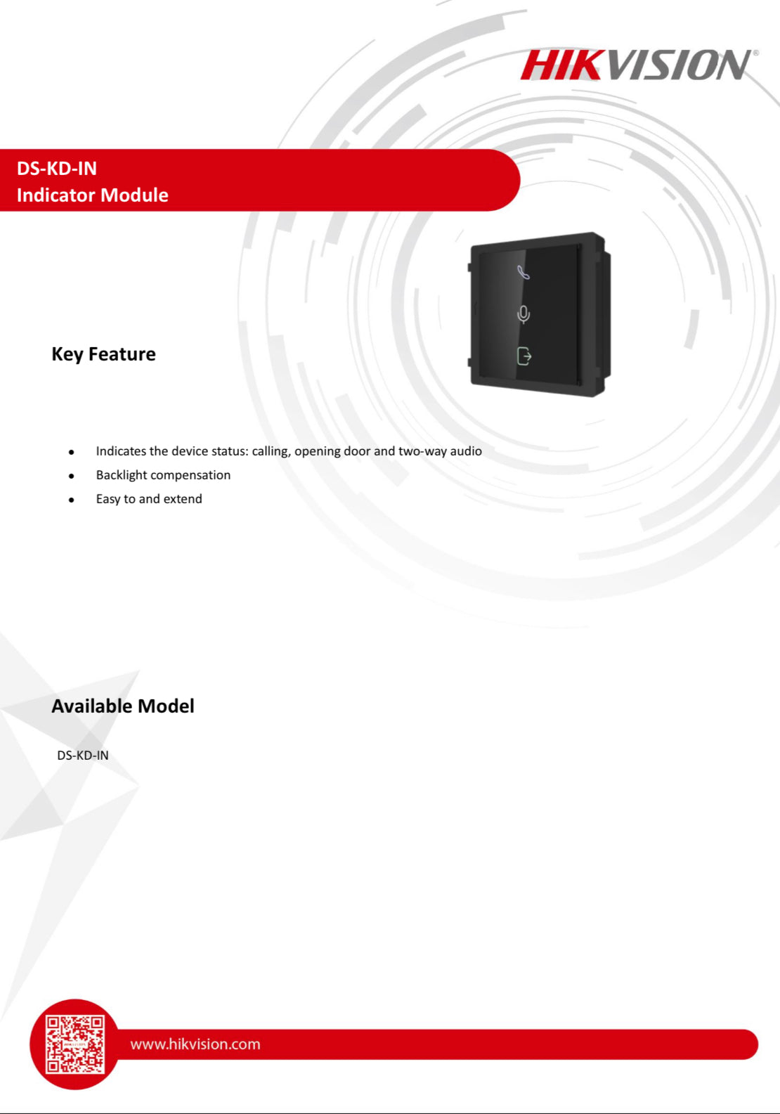 Hikvision Indicator Module, Indicates the device status: calling, opening door and two-way audio, Backlight, IP65, 12 VDC (Powered by the other module), 3 year warranty