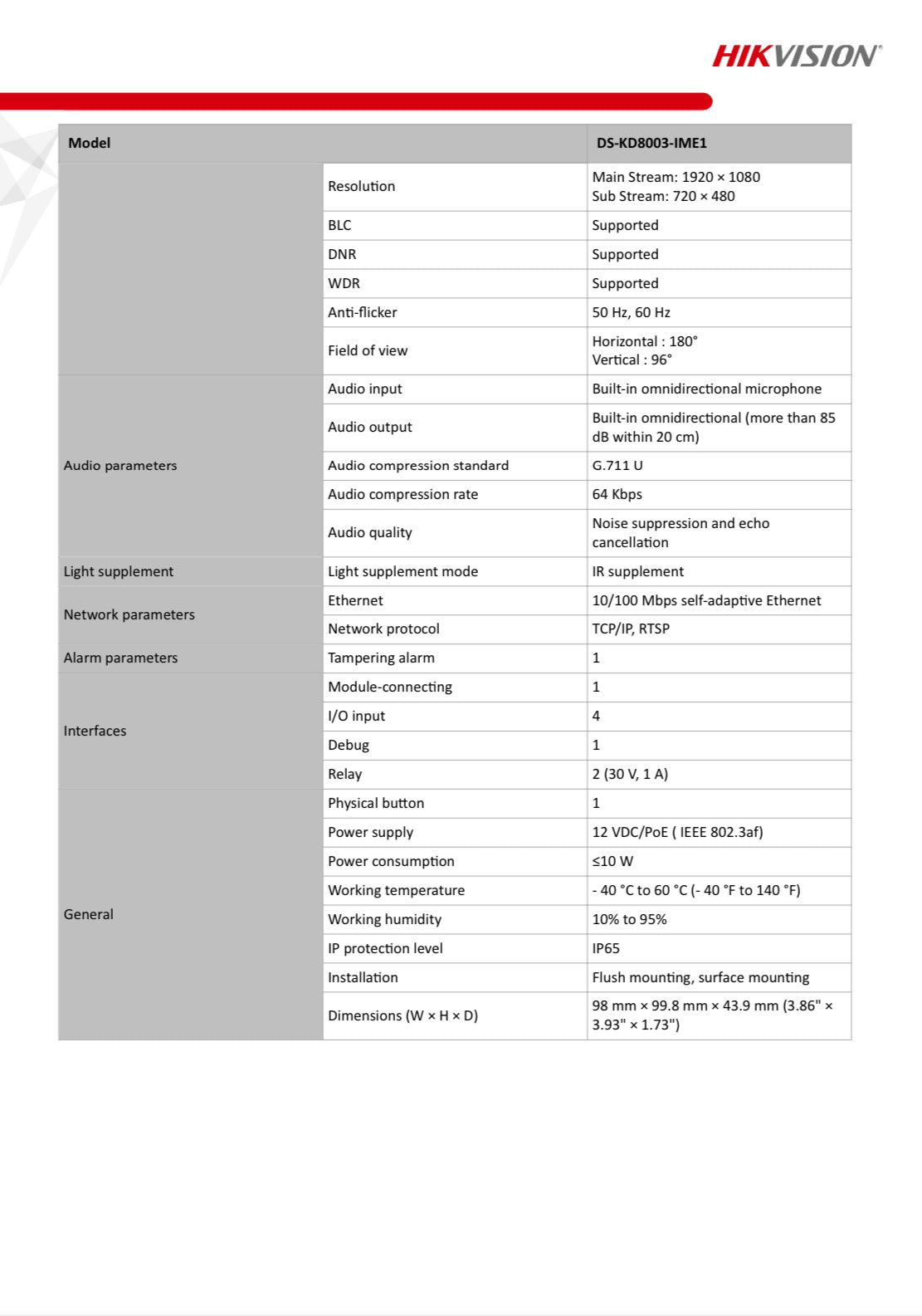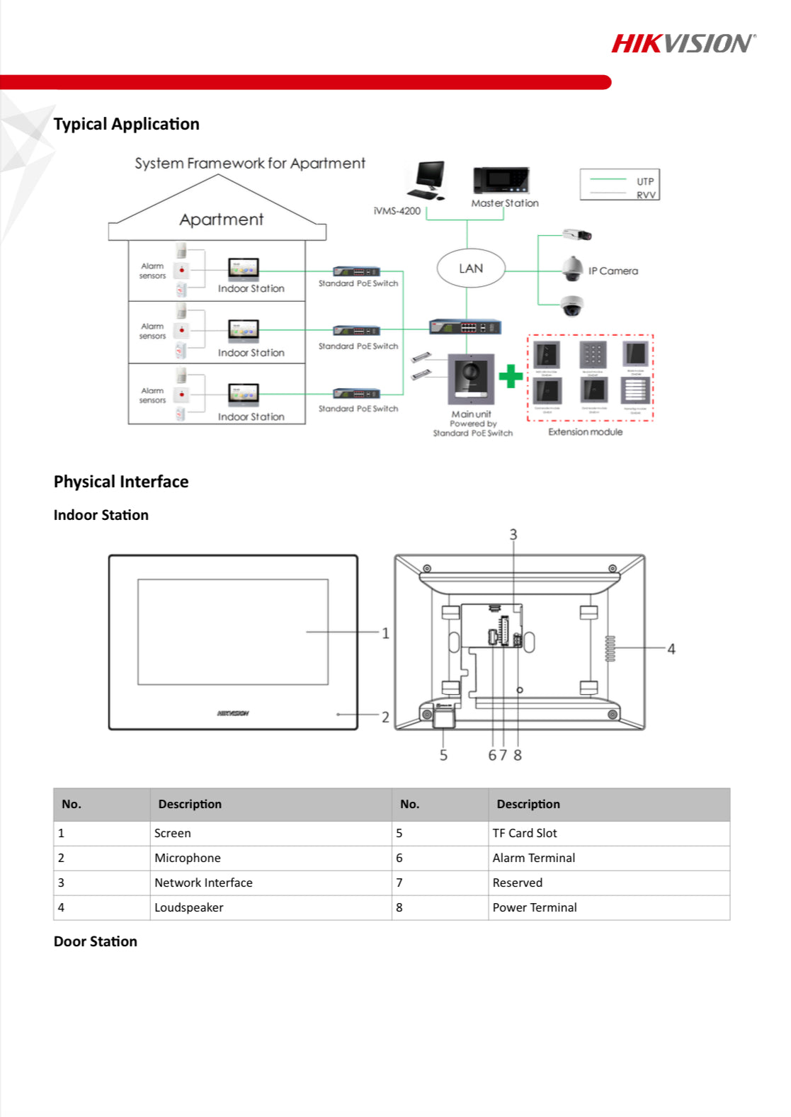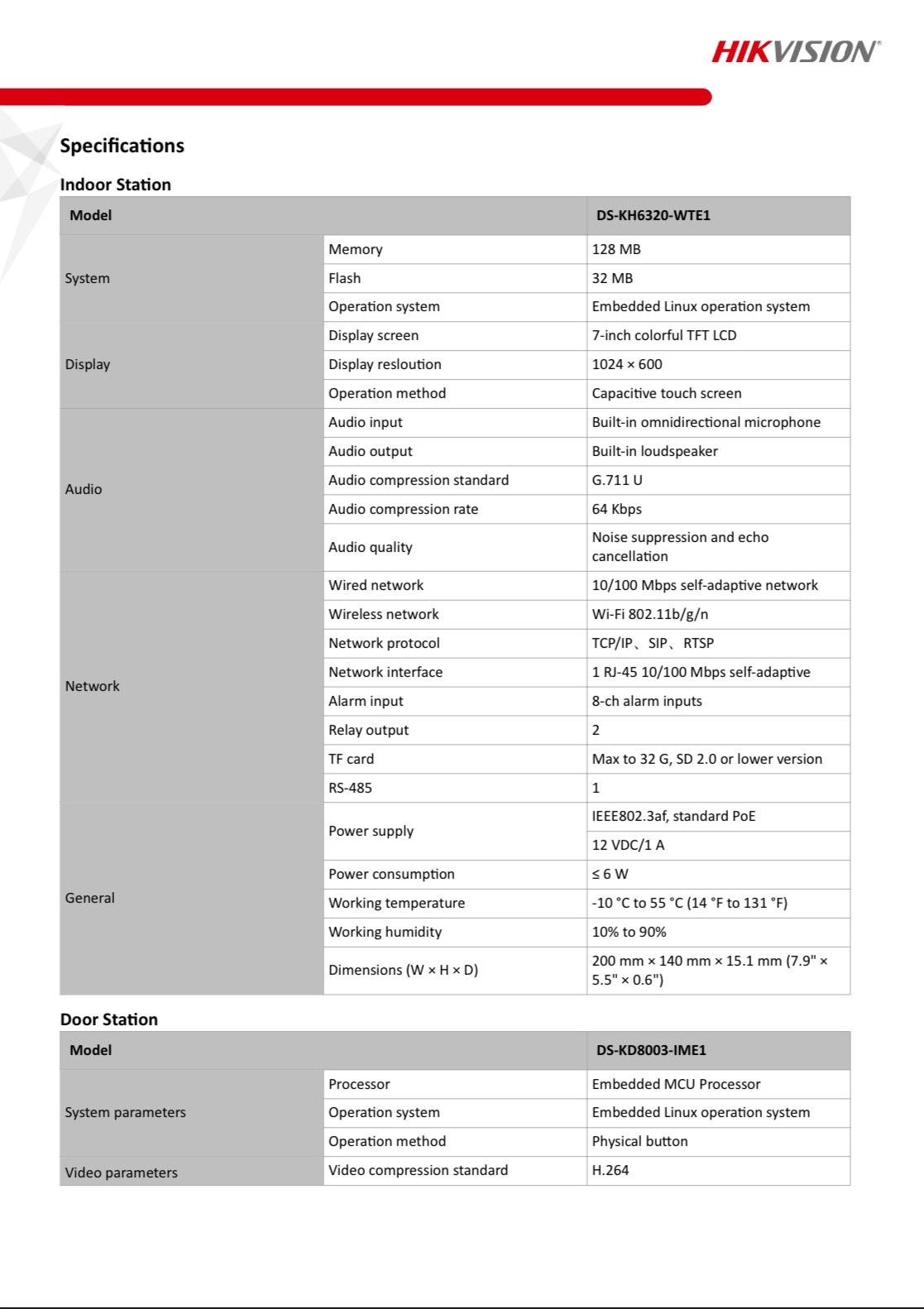 Hikvision Video Intercom Bundles, including: Indoor station DS-KH6320-WTE1 & Door station DS-KD8003-IME1 (surface mount bracket ), 4 port standard PoE switch x1; 16GB TF card x1; 3 year warranty