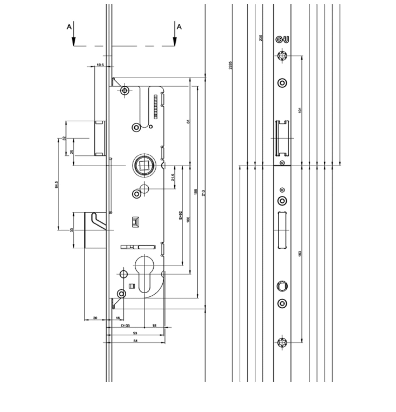 Lever operated latch & deadbolt multipoint lock from GU with 2 short hooks and 2 outboard rollers.
