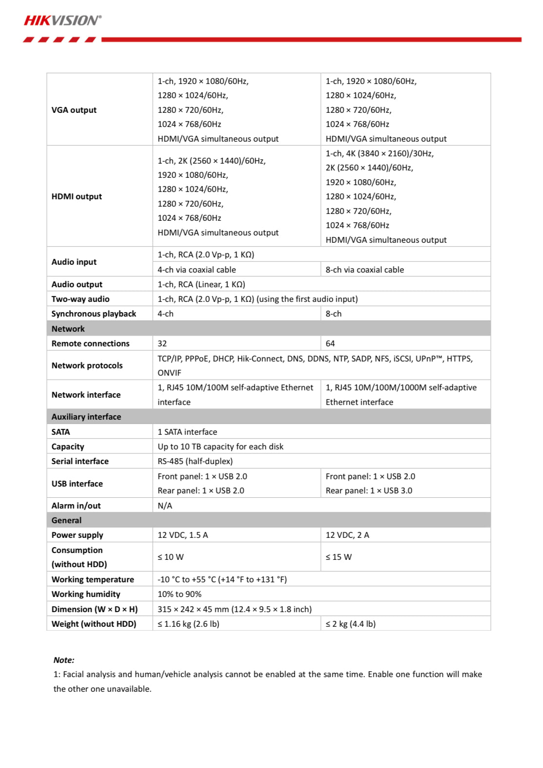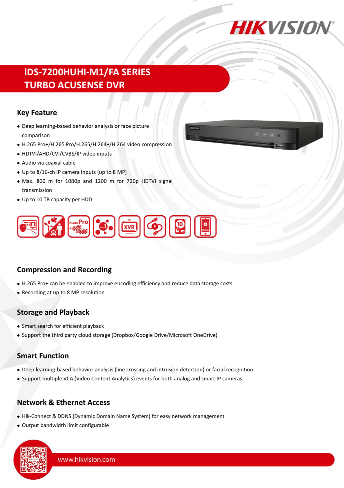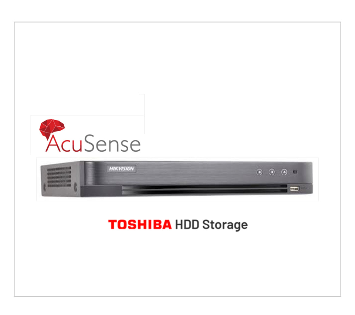 Hikvision 8ch AcuSense Turbo HD DVR, 4ch False Alarm Reduction OR 1ch Facial Recognition, 4ch audio via coaxial cable, up to 8MP, 3 year warranty