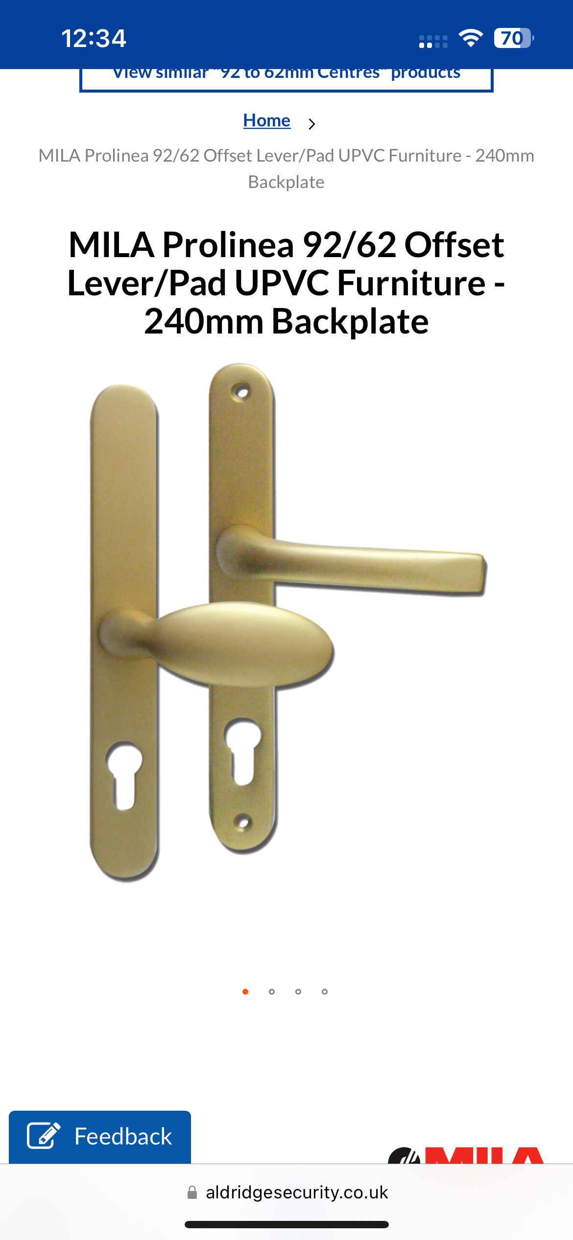 This Mila Proline lever/pad furniture has a 240mm backplate and offset 92/62mmmm centres. The backplate has an integrated spring mechanism to ensure that the lever consistently returns to 90 degrees to prevent handle sag. These handles are suitable for use with either sprung and unsprung door locks.