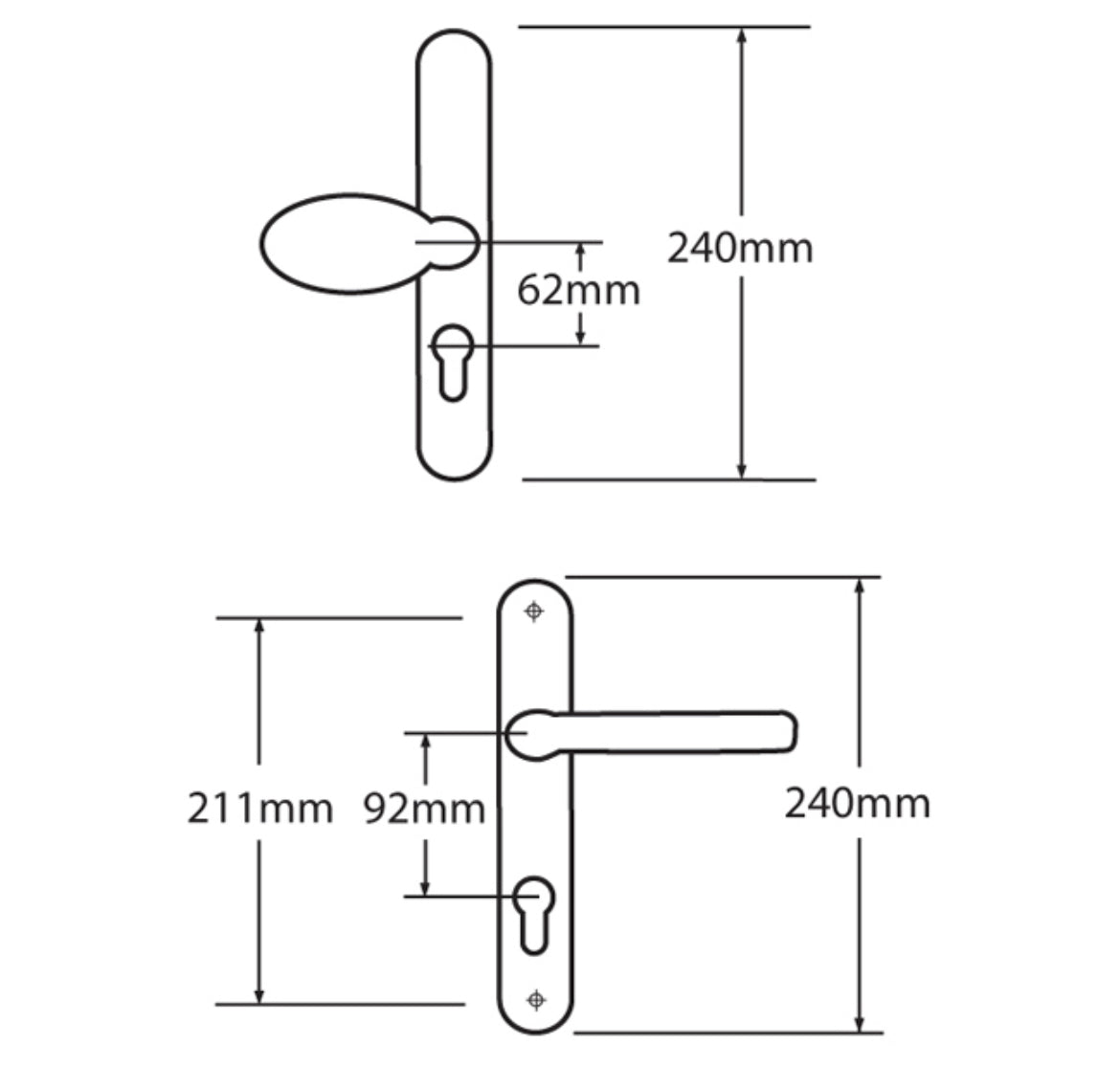 MILA Prolinea 92/62 Offset Lever/Pad UPVC Furniture - 240mm Backplate