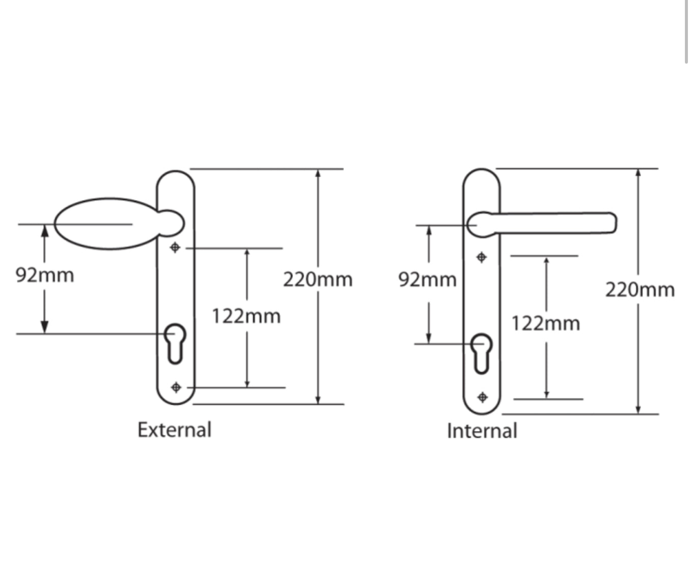MILA Prolinea 92 Lever/Pad UPVC Furniture - 220mm Backplate
