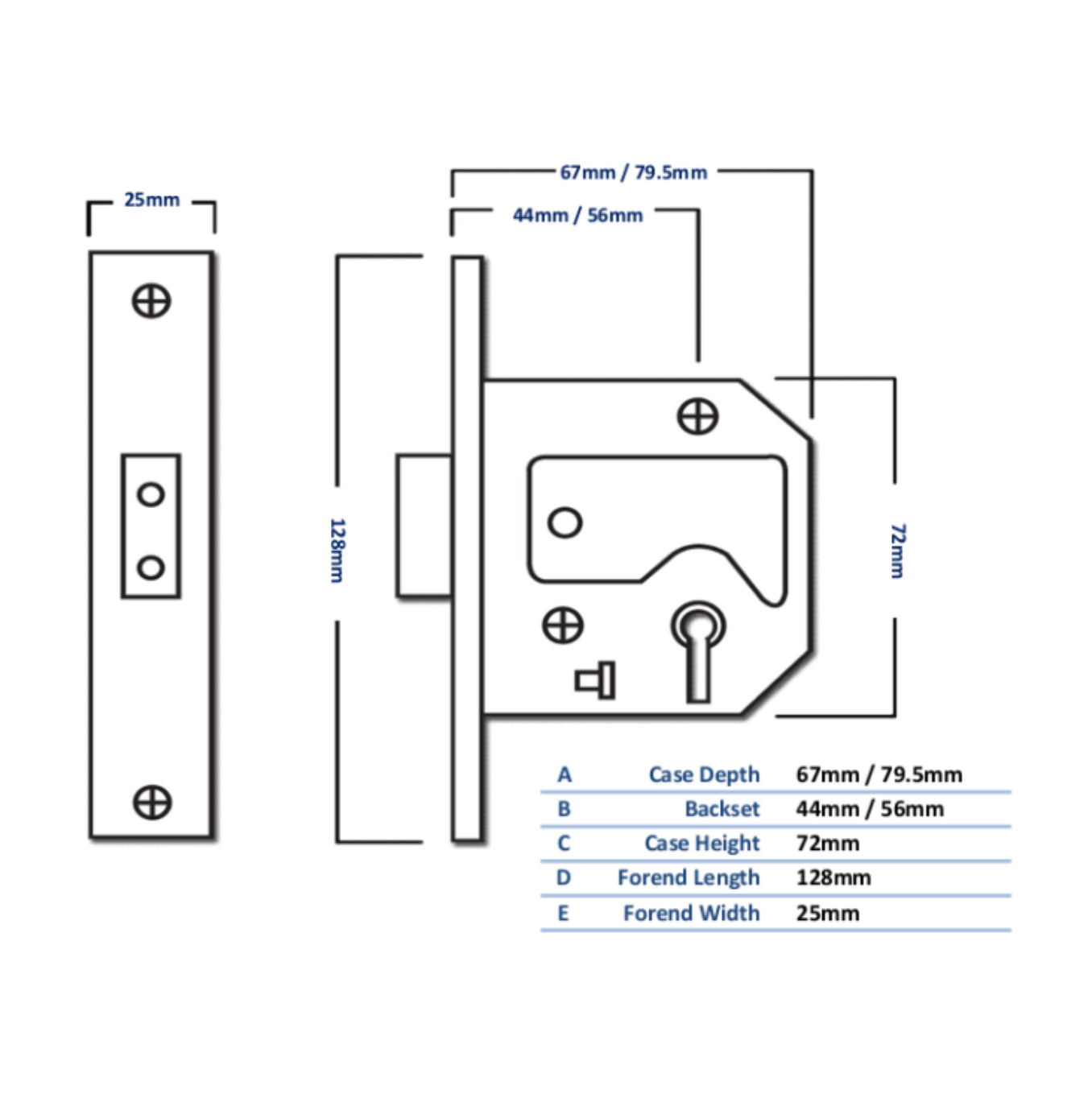 - to suit doors up to 54mm thick