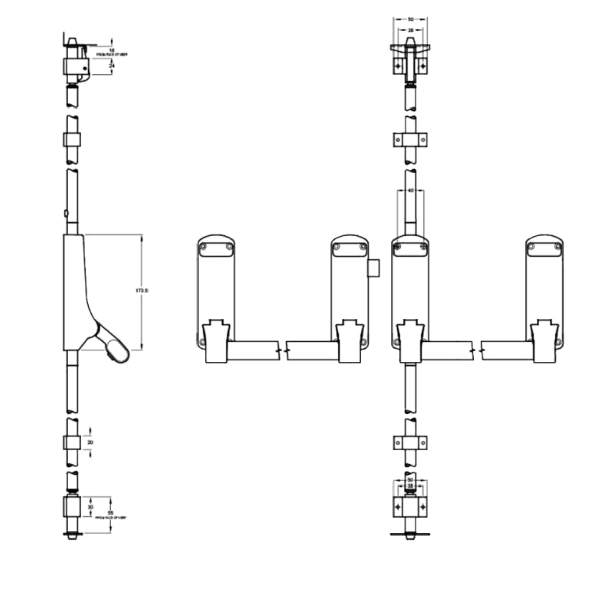 - Latch unit is installed on primary leaf (1st to open) while bolt unit is fitted to the secondary leaf
